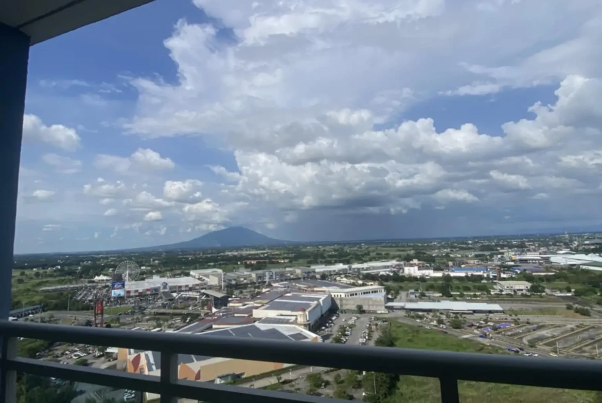Located on the 27th floor of Bali Tower, this unit offers a stunning balcony view of Mt. Arayat, plus nearby commercial areas like SM and Robinsons.