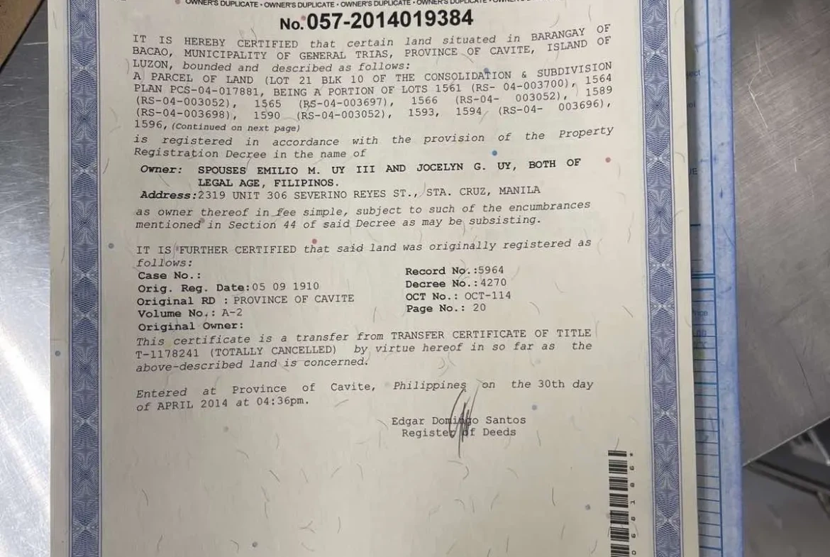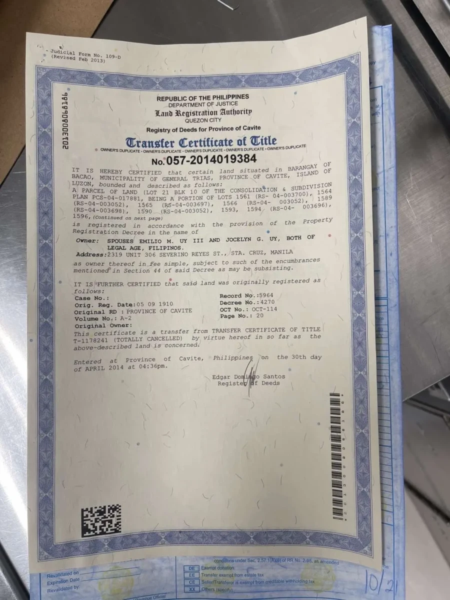 I would like to put on sale a lot in Antel Grand Village in Kawit, Cavite that me and my wife own and have a clean title of.